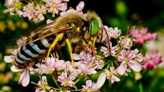 While a North American common eastern bumblebee will shake pollen from a flower using its mandibles and wing muscles, an Australian blue-banded bee will simply bash a flower with its head up to 350 times a second.