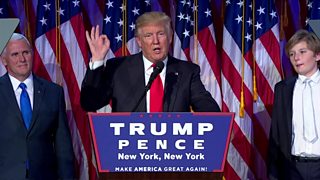 Watch as historian Simon Schama and writer Melanie Phillips lock horns as they discuss the implications of Donald Trump's victory in the US presidential elections with BBC Newsnight's Evan Davis.