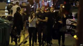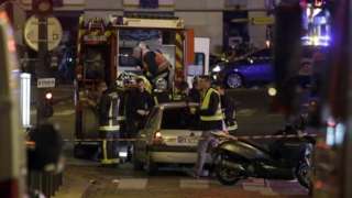 Theresa Cede, who was in the audience at the Bataclan, recounts the horror of Friday's attack. She tells BBC Radio 5live: "There were grenades, or one grenade at least that I know of. Body parts flying around, people shouting, screaming.