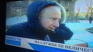 那天晚上,我坐下来看地方新闻,我们又上了电视。毫不吃惊,对话中那段关于我们被盯梢、闯入别人办公室、俄国依赖原油出口的内容都未包括进去。取而代之的,亚历山大在他的新报道中以讽刺的口吻说,“BBC真知道如何展示俄国‘好看’的一面”,他指责我们拍摄“农贸市场、公交车站和民宅。”