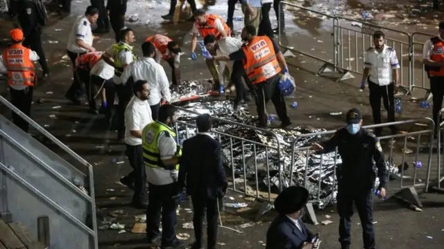Dubban masu ibada ne suka taru a kasan tsaunin Meron da ke arewacin kasar domin wannan biki. An ga hotunan tarin gawarwaki da aka sanya a ledoji jere a kasa a wurin da turmutsutsun ya auku.