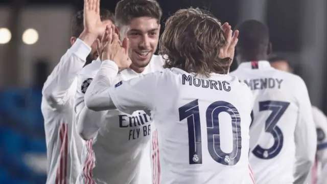 Masu buga gaba: Benzema da Asensio da Lucas V. da Vini Jr. da Mariano da kuma Rodrygo.