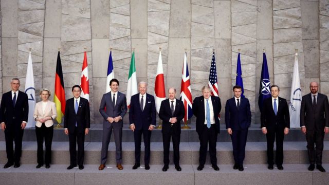 ベルギー・ブリュッセルでは24日、欧州連合(EU)、北大西洋条約機構(NATO)、主要7カ国(G7)の首脳が一堂に会し、ウクライナへの軍事侵攻を続けるロシアに対して結束して対抗していく姿勢をあらためて示した。対するロシアは、NATOが紛争の継続を望んでいると批判した。