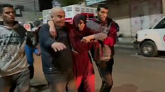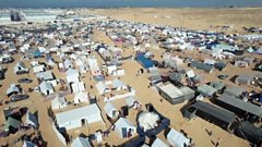 Video caption: Drone footage shows tents for Gazans displaced by warDrone footage shows tents for Gazans displaced by war Video caption: Israel Gaza: Palestinian girl shows bombed remains of house next doorIsrael Gaza: Palestinian girl shows bombed remains of house next door