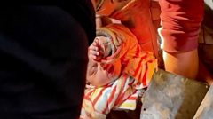 ReutersCopyright: Reuters Displaced family sheltering in a tent in Rafah, close to the border with EgyptImage caption: Displaced family sheltering in a tent in Rafah, close to the border with Egypt Video caption: Gaza: Baby pulled alive from rubble after Israeli air strike on RafahGaza: Baby pulled alive from rubble after Israeli air strike on Rafah