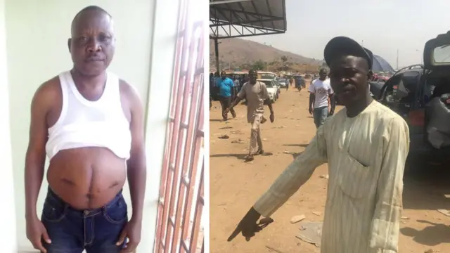 Salisu wey be member of di Road union, bin come park early to load passengers wen e hear a bang sound and e feel as if something pass im hand- before e go say jack, im hand cut for ground.