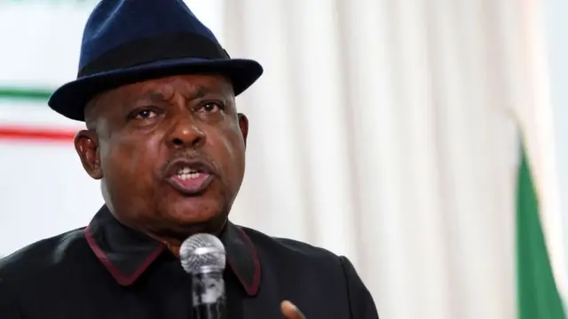'Buhari don leave di leadership of Nigeria for two tok-tok pesin hands' - Uche Secondus, National Leader of di People Democratic Party (PDP)