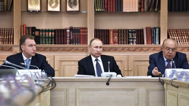 Игорь Шувалов, Владимир Путин и Виктор Садовничий на заседании попечительского совета МГУ