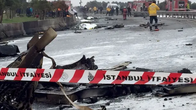 Вертолет вылетел из стамбульского аэропорта Ататюрка. Через пять минут полета он врезался в телебашню и упал на шоссе. Сейчас дорога перекрыта. На месте происшествия работают пожарные, медики и спасатели.