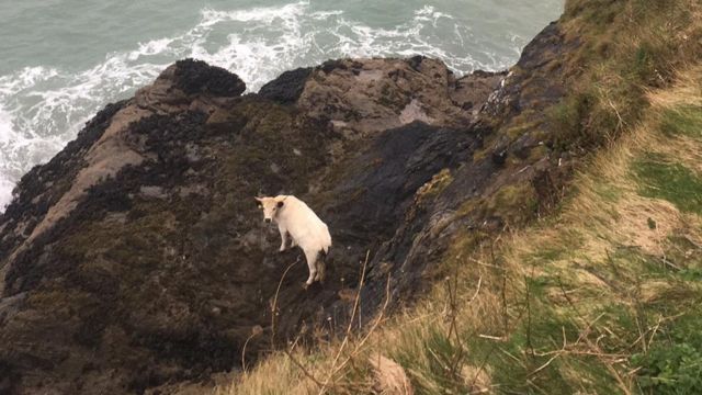 Британские спасатели провели многочасовую успешную операцию по вызволению из трудной ситуации беременной коровы, которая упала с 18-метрового утеса и уплыла на соседний остров.
