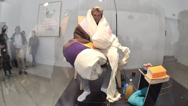 Художник начал долговременное сидение на яйцах в стеклянном виварии парижского музея Palais de Tokyo 29 марта - около трех недель назад.