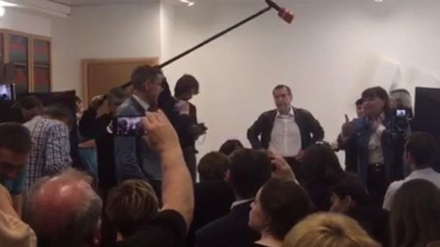 После возникшей перепалки представители "Новой газеты", которая предоставила площадку, потребовали прекратить пресс-конференцию и освободить помещение.