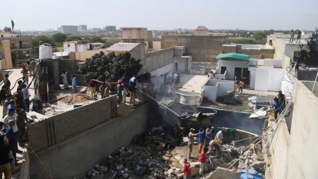 Свидетель катастрофы Мохаммед Узейр Хан рассказал Би-би-си, что услышал грохот и вышел из дома.