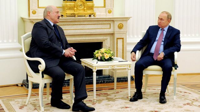 Президенты России и Беларуси Владимир Путин и Александр Лукашенко на встрече в Москве обсудили украинский кризис и возможные санкции против двух стран, которые оба сочли неизбежными.