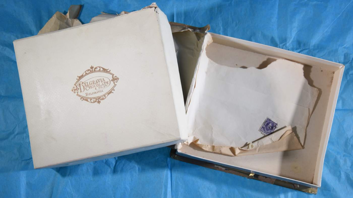 А затем под альбомом я нашел бумагу, которой покрывают шоколад в коробках, в стиле 1940-х. Ее я раньше не видел.