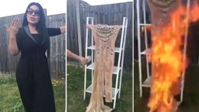 گلوکارہ آریانا سید نے سماجی رابطوں کی ویب سائٹ فیس بک پر ایک ویڈیو جاری کی جس میں متنازع لباس کو آگ میں لپٹا دیکھا جا سکتا ہے۔